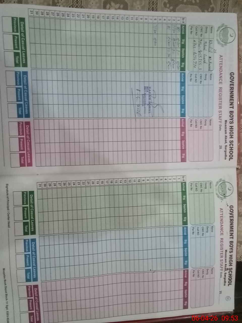 | CNIC | Full Name | Designation | R/C | Absence During Last Calender Month |