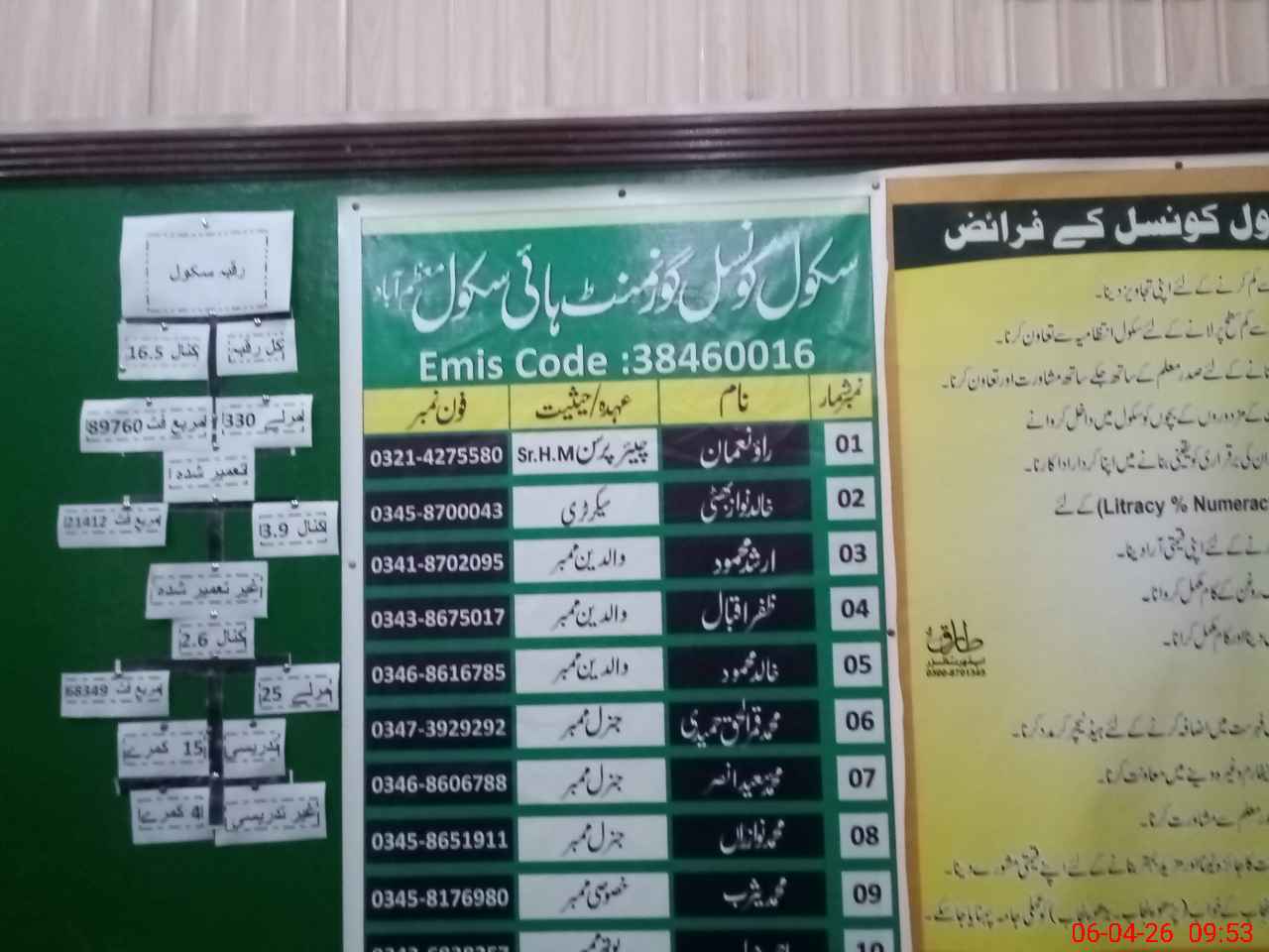 | EMIS Code: 38460016 | Name of School: GHS MUAZZAM ABAD | |||