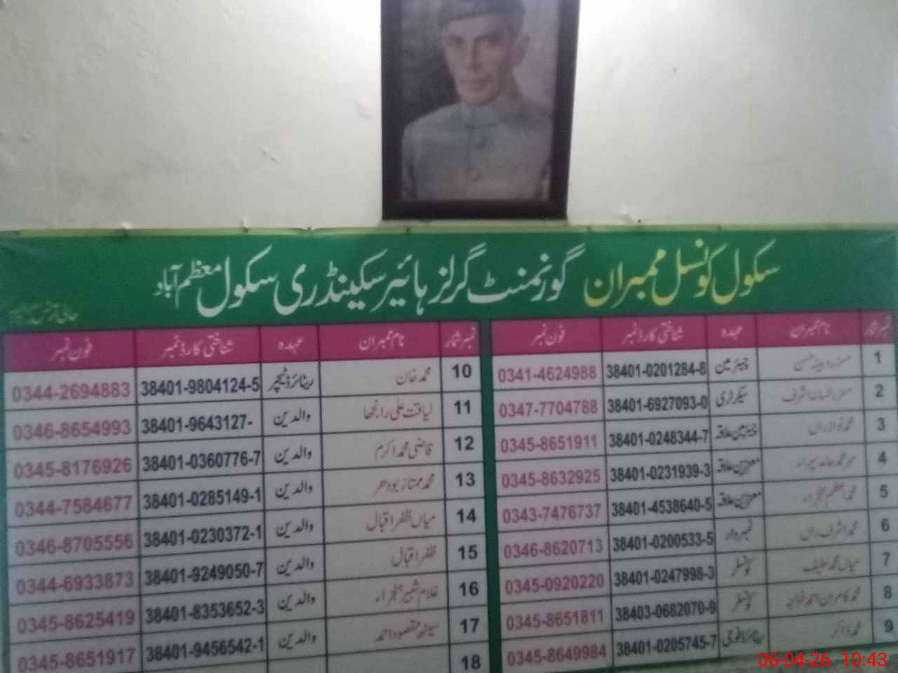 | EMIS Code: 38460045 | Name of School: GGHSS MUAZZAM ABAD | |||