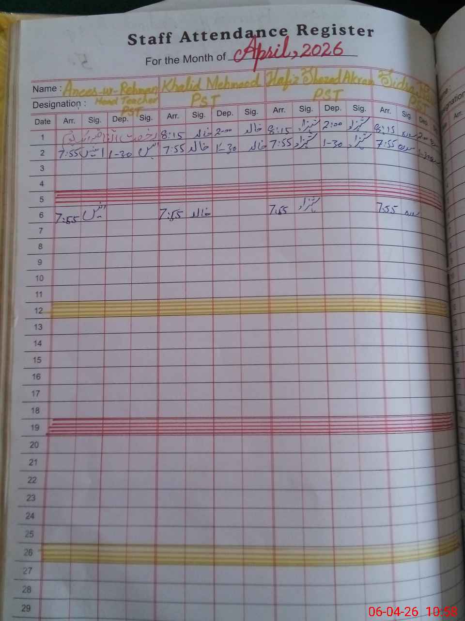 | Name: An**** Designation: (School Headmaster's/Headmistress's) PST Phone/Cell Number: 03**** |