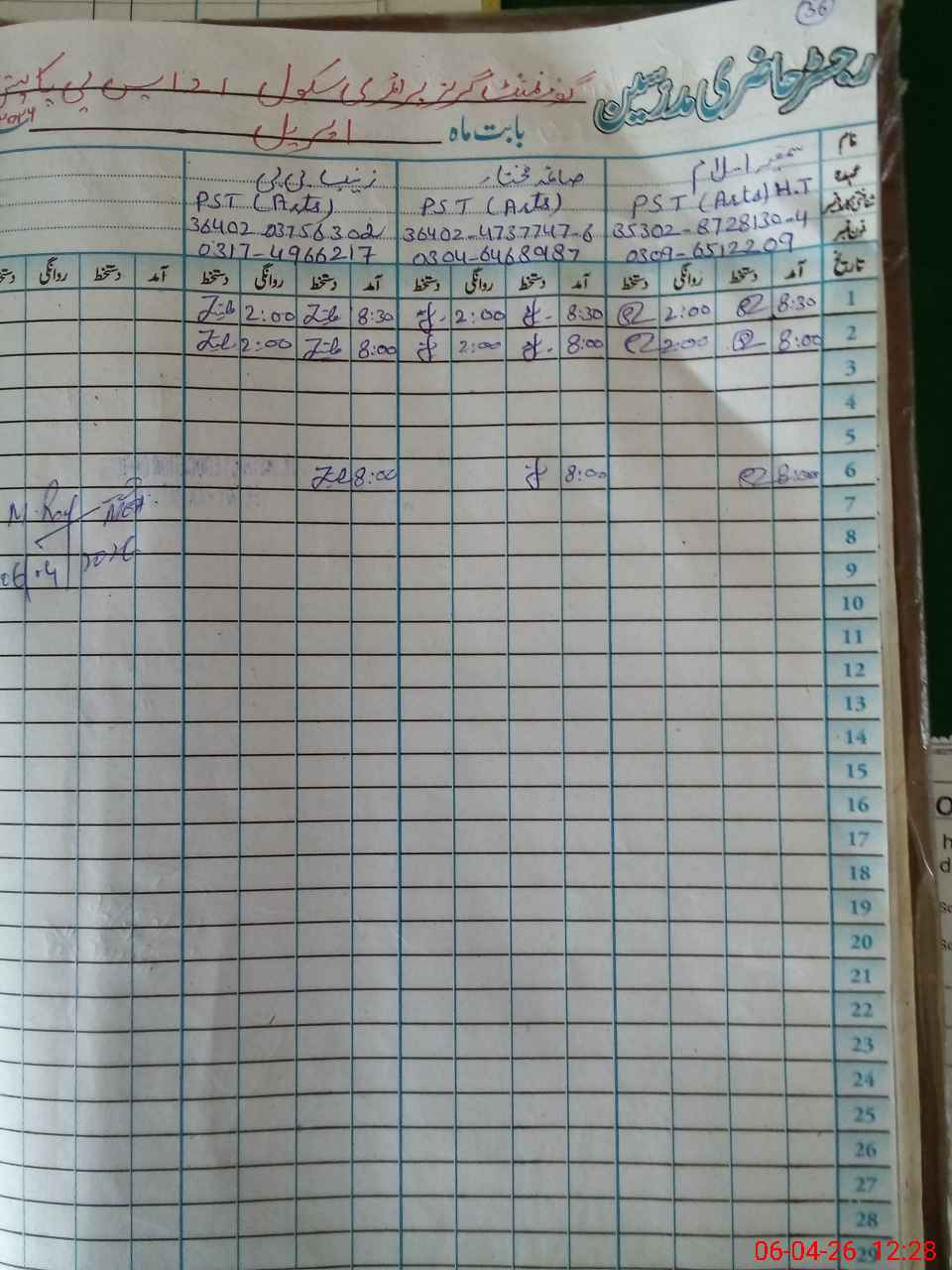 | Name: Sa**** Is**** Designation: (School Headmaster's/Headmistress's) PST Phone/Cell Number: 03**** |
