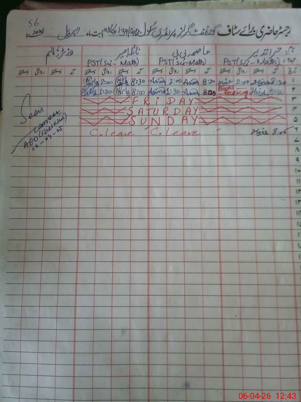 | 35**** | Na**** Am**** | PST | Regular | 0 | 0 | 0 | 0 | 0 | 0 | 0 | 0 | 0 | Casual |