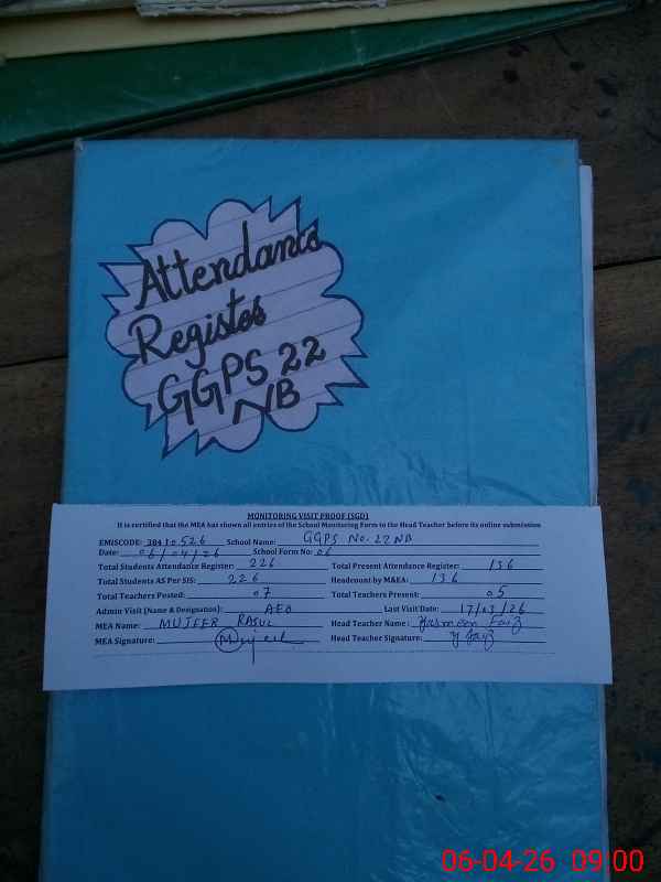 | EMIS Code: 38410526 | Name of School: GGPS CHAK NO.22 NB | |||