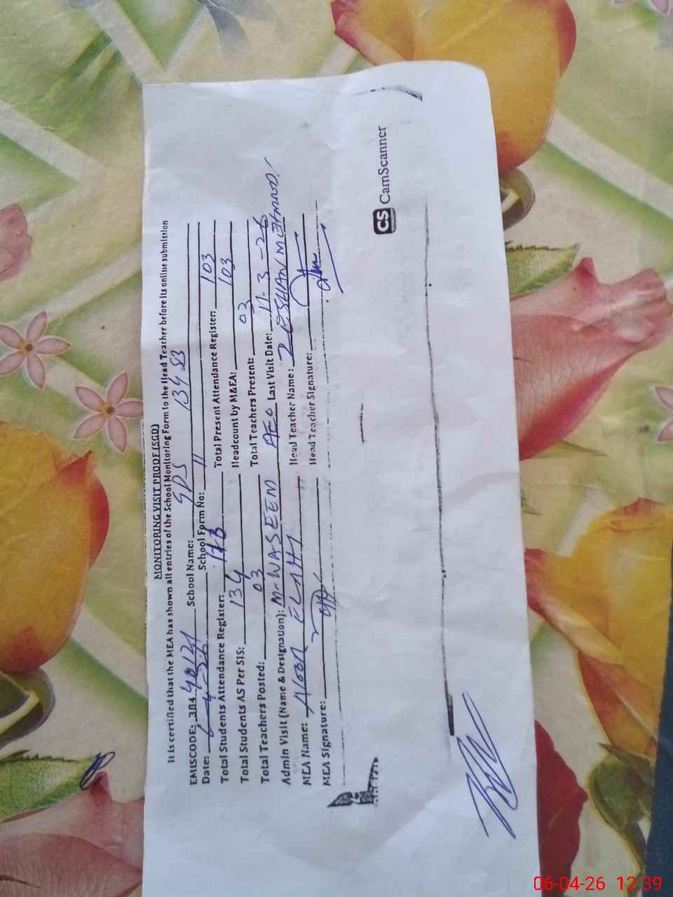 | Name: ZE**** ME**** Designation: (School Headmaster's/Headmistress's) ESE( SC) Phone/Cell Number: 03**** |