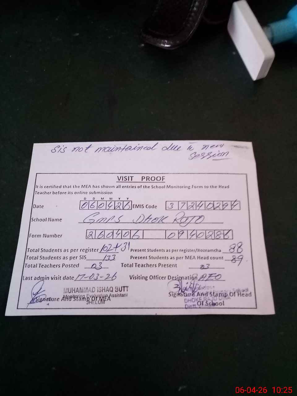 | EMIS Code: 37240294 | Name of School: GMPS DHOK RAJJO | |||