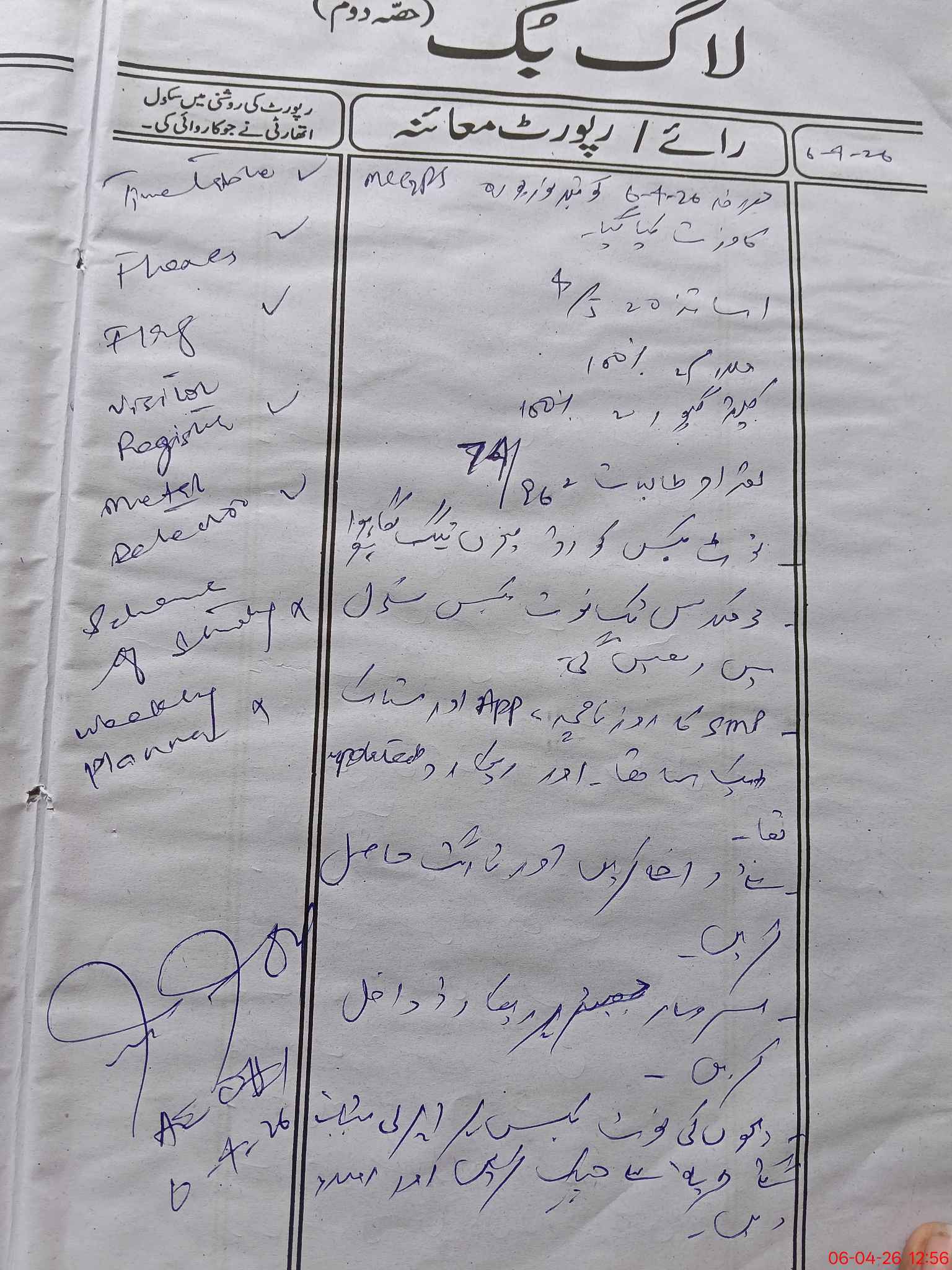 | Certified that this School was Inspected by the Undersigned MEA/DMO Today and the Information Stated Above is as Per Record. | |||||