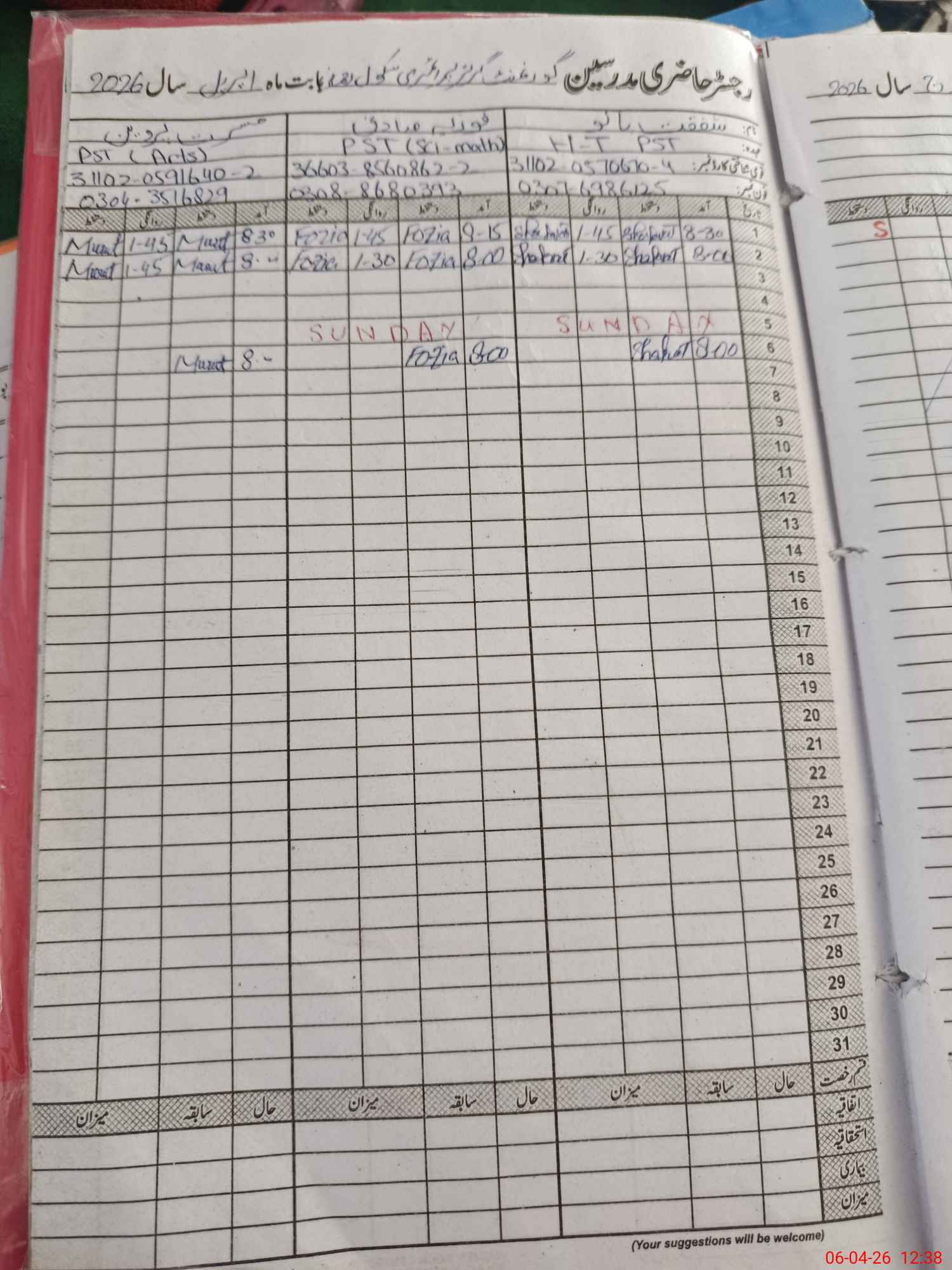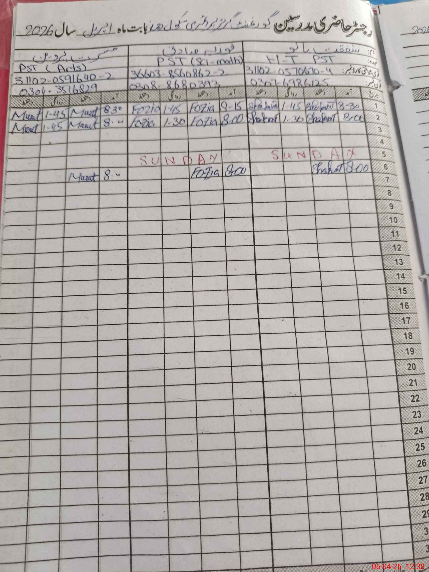 | Name: SH**** BA**** Designation: (School Headmaster's/Headmistress's) PST Phone/Cell Number: 03**** |