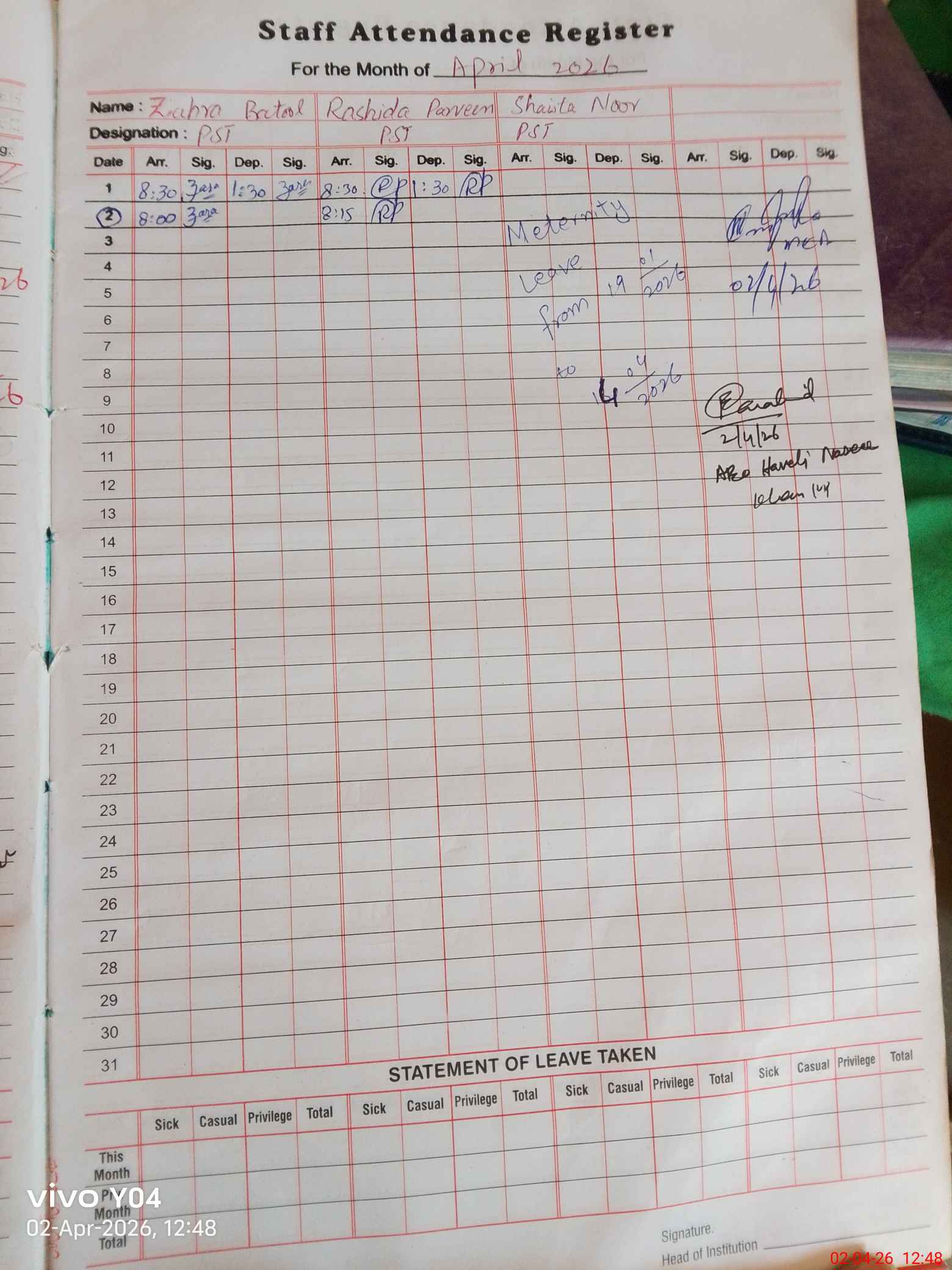 | 36**** | Sh**** No**** | PST Science/Maths | Regular | 0 | 0 | 0 | 0 | 0 | 0 | 0 | 0 | 0 | Maternity |