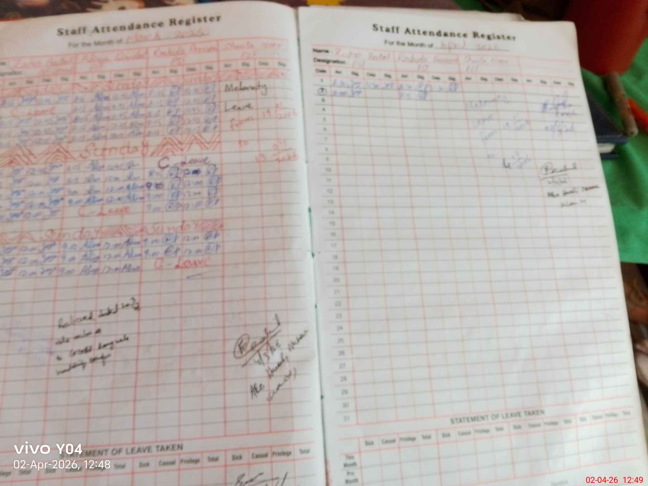 | Leave | Duty | Absent | Maternity | Medical | Ex- Pak |