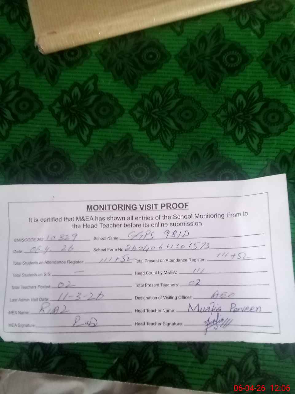 | EMIS Code: 39210329 | Name of School: GGPS 98 D | |||