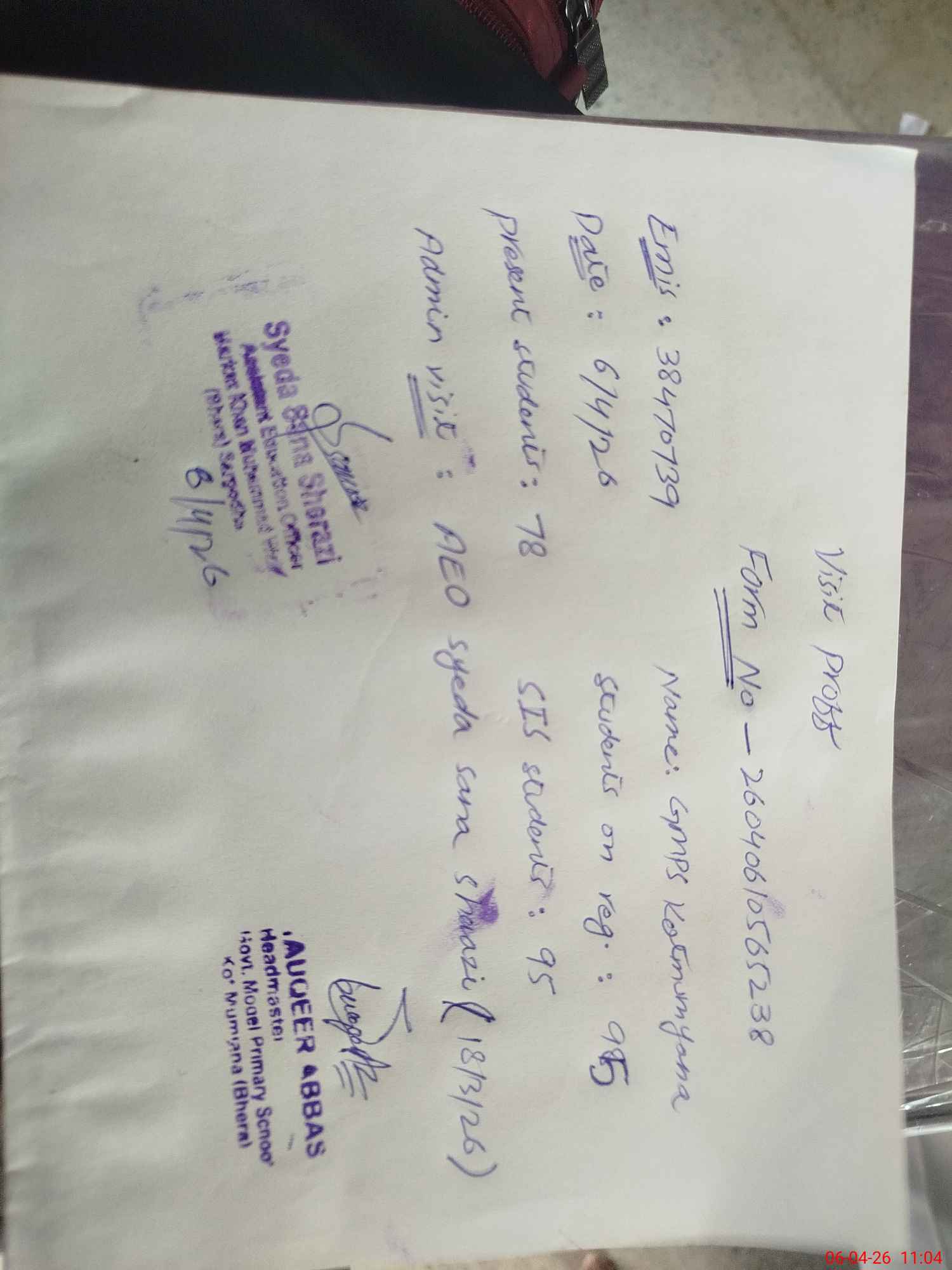 | EMIS Code: 38470739 | Name of School: GMPS KOT MUMIANA | |||