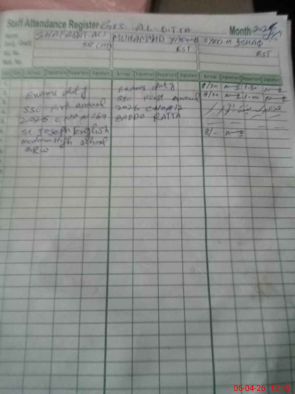 | 34**** | Sh**** Al**** | SST (Drawing) | Regular | 0 | 0 | 0 | 0 | 0 | 0 | 0 | 0 | 0 | Exam Duty |