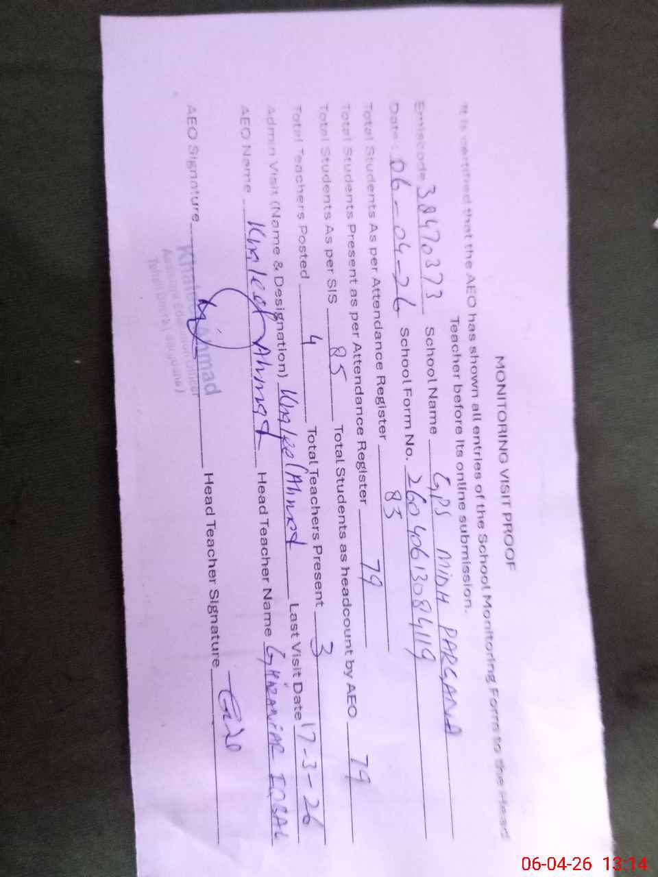| EMIS Code: 38470373 | Name of School: GPS MIDH PARGANA | |||
