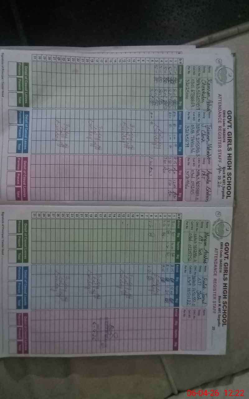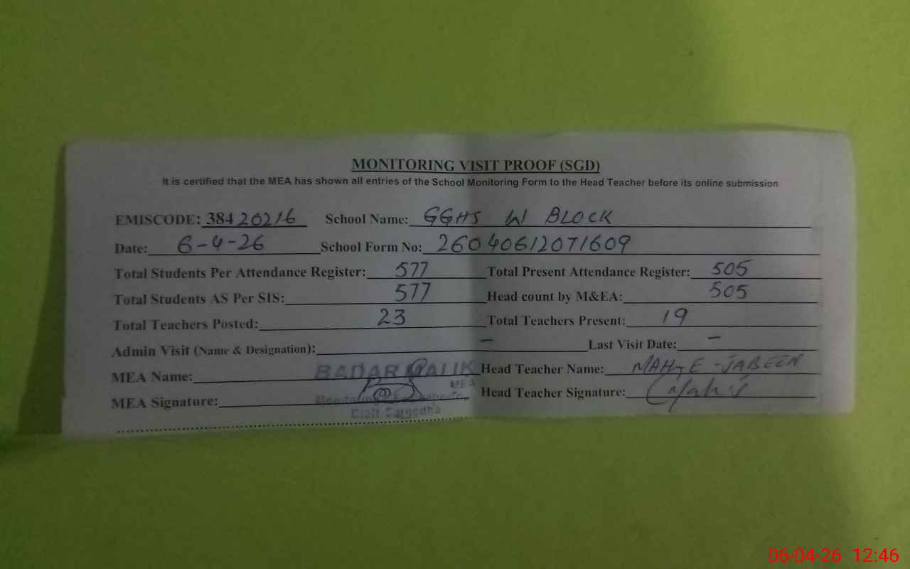 | EMIS Code: 38420216 | Name of School: GGHS BLOCK-W NEW SATTELITE TOWN SARGODHA | |||