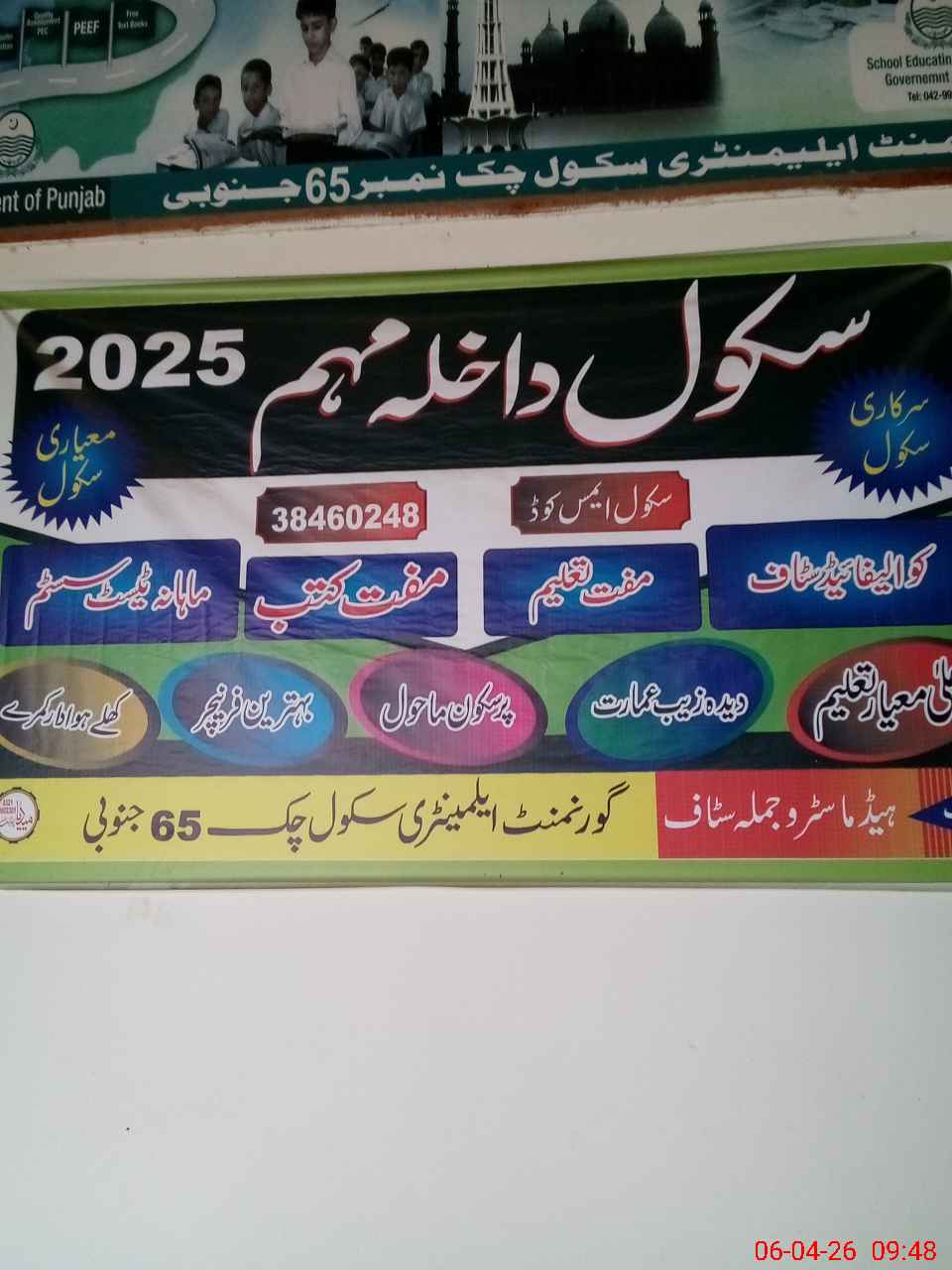 | EMIS Code: 38460248 | Name of School: GES CHAK NO.65 SB | |||