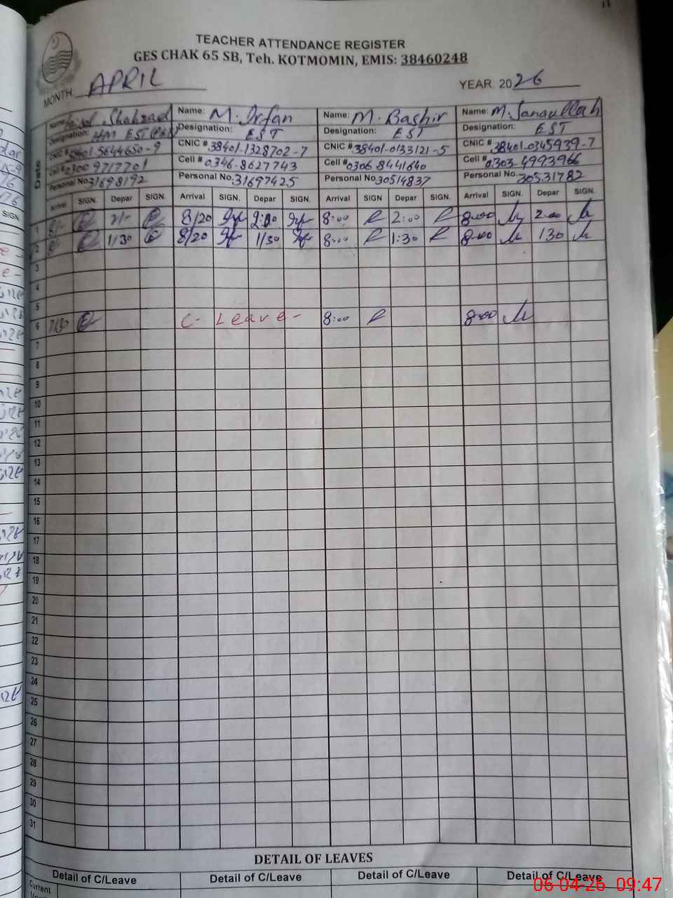 | 38**** | Kh**** Sh**** | PST Science/Maths | Regular | 0 | 0 | 0 | 0 | 0 | 0 | 0 | 0 | 0 | Exam Duty |