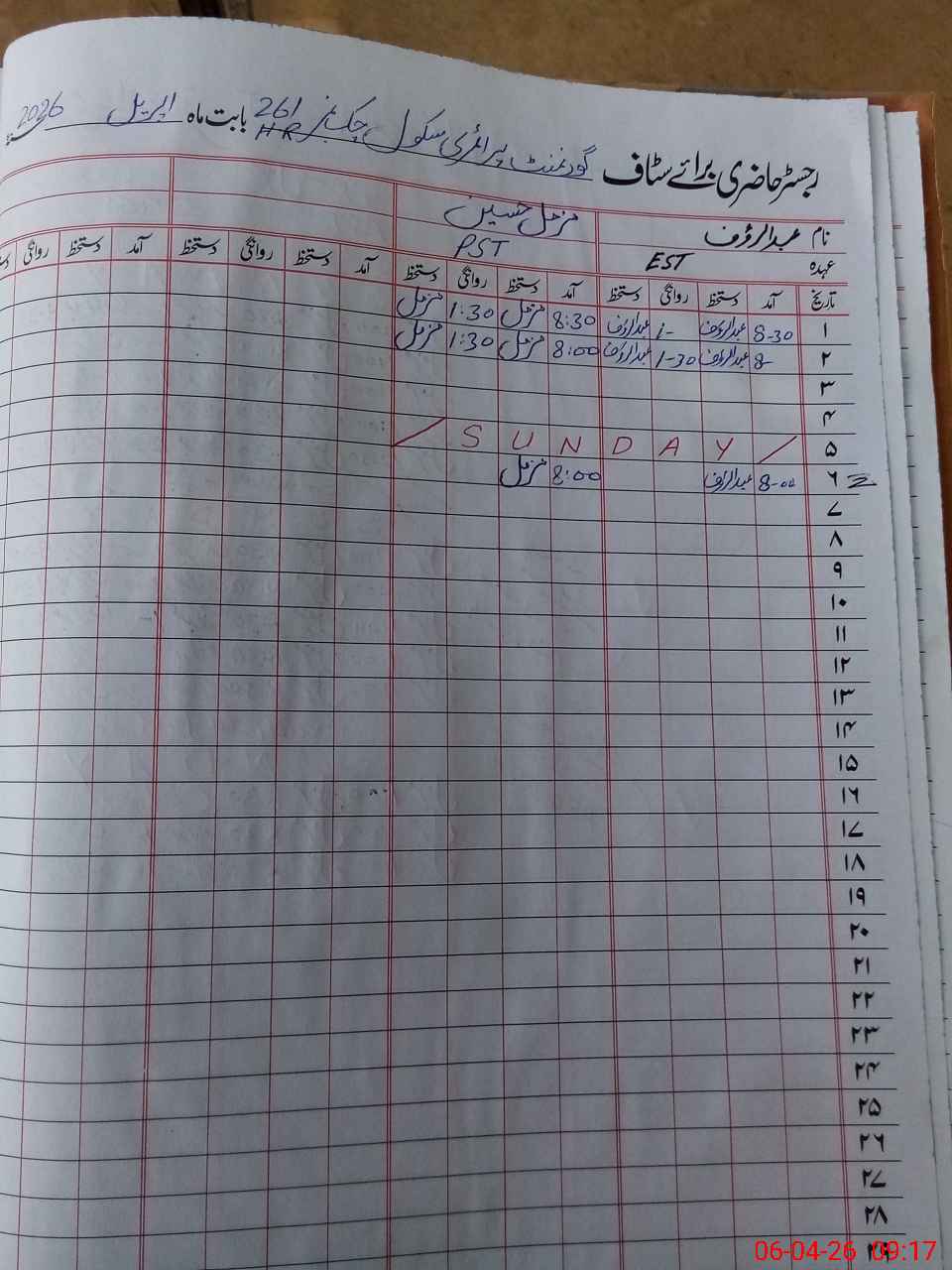 | Name: AB**** RA**** Designation: (School Headmaster's/Headmistress's) PST Phone/Cell Number: 03**** |