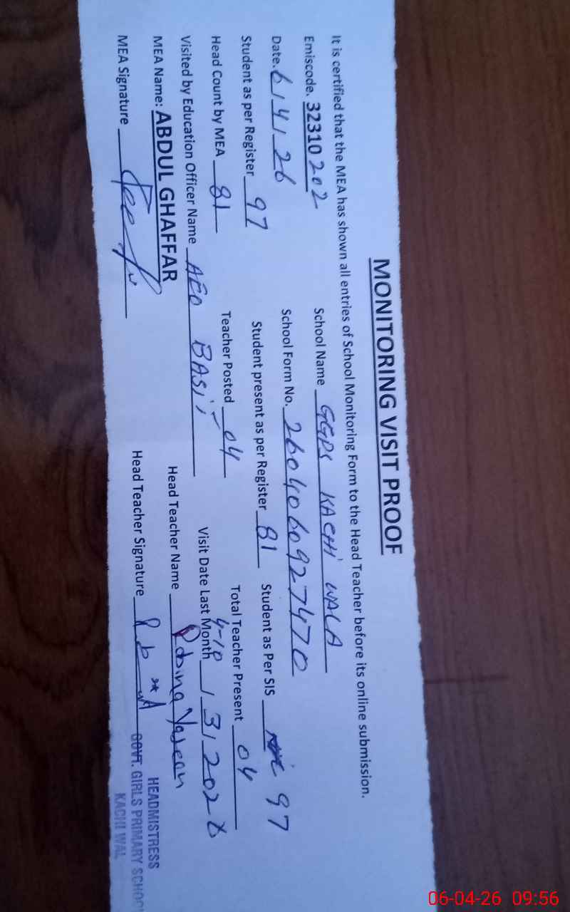 | EMIS Code: 32310202 | Name of School: GGPS KACHI WALI | |||