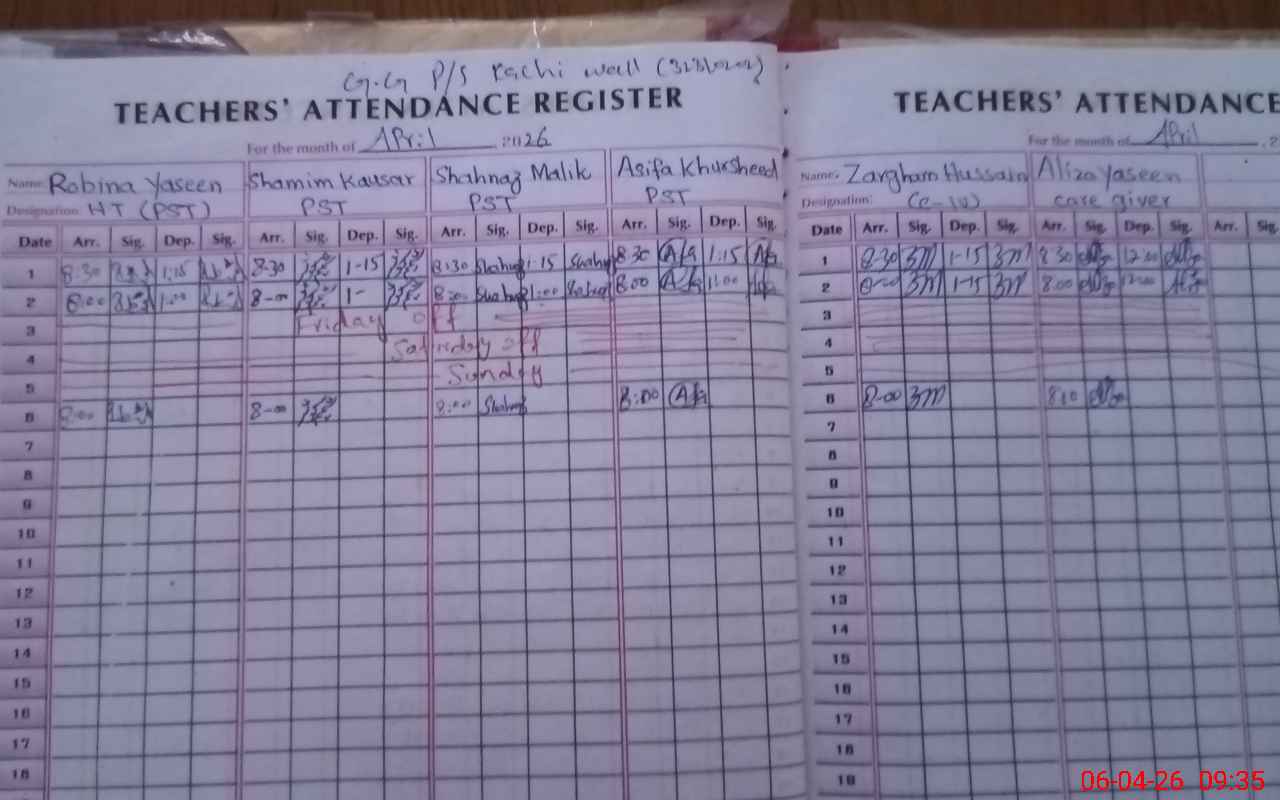 | Attendance Register | Head Teacher | MEA with School | Visit Proof |