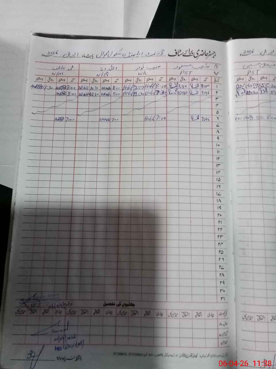 | 37**** | Mu**** Ar**** Al**** | PST Science/Maths | Regular | 0 | 0 | 0 | 0 | 0 | 0 | 0 | 0 | 0 | Exam Duty |