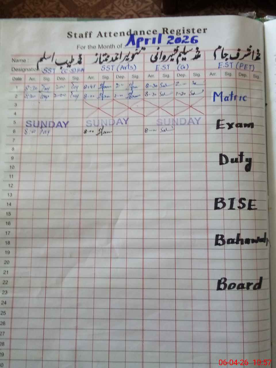 | 31**** | Mu**** As**** Ja**** | EST Physical Education | Regular | 0 | 0 | 0 | 0 | 0 | 0 | 0 | 0 | 0 | Exam Duty |