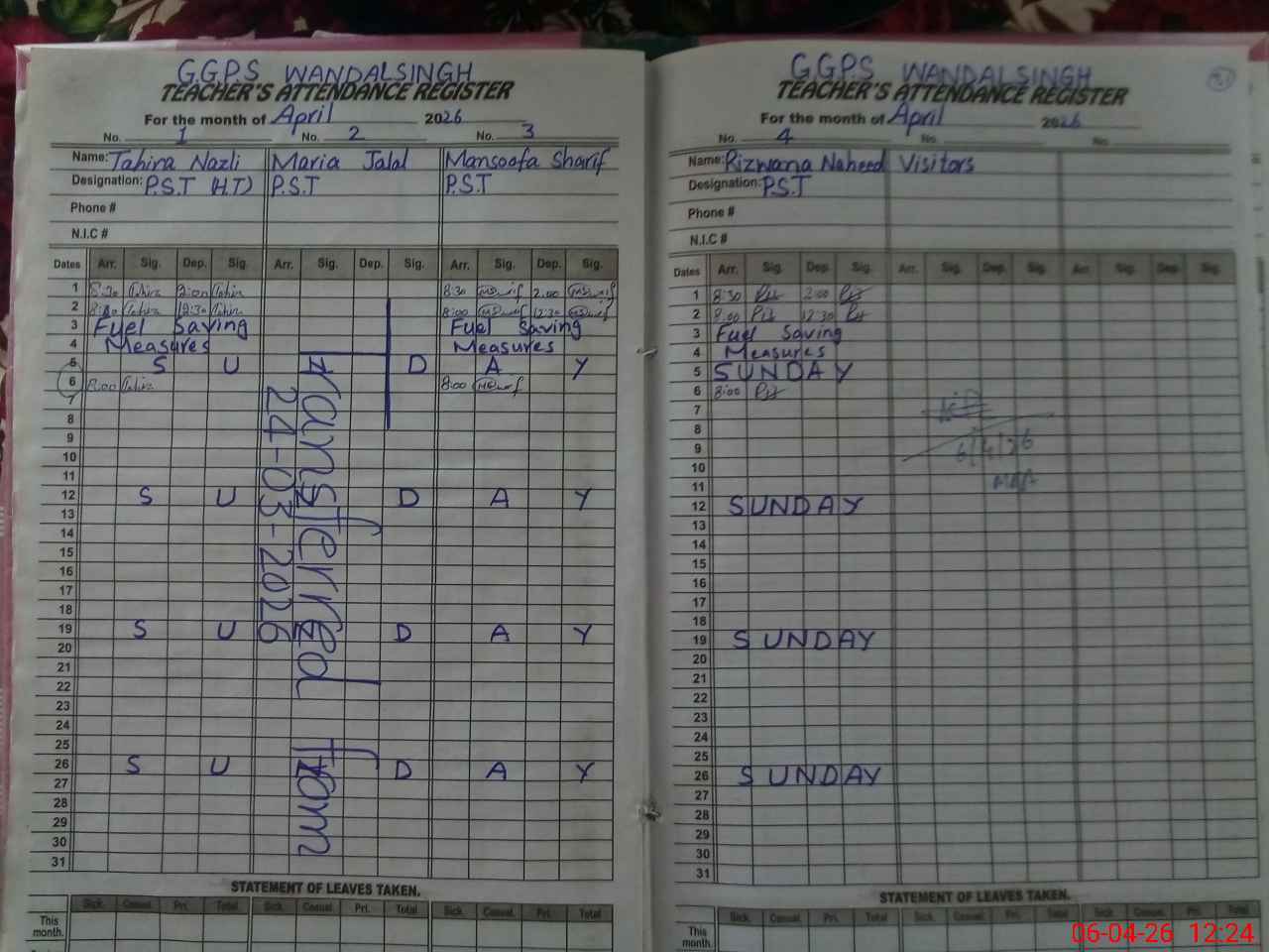 | Leave | Duty | Absent | Maternity | Medical | Ex- Pak |