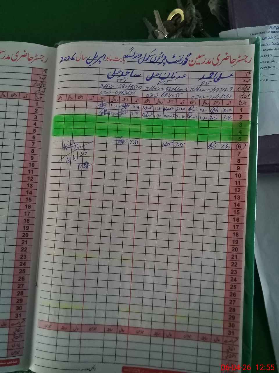 | Name: Al**** Ah**** Designation: (School Headmaster's/Headmistress's) PST Phone/Cell Number: 03**** |