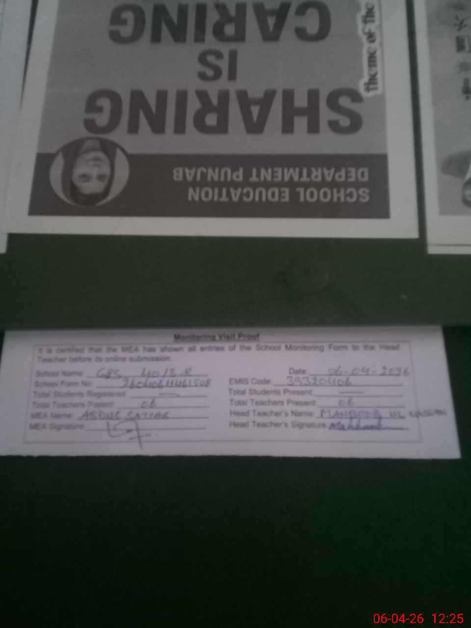 | Attendance Register | Head Teacher | MEA with School | Visit Proof |