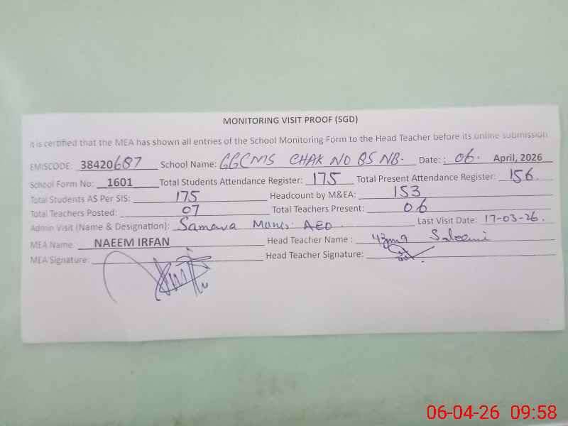 | EMIS Code: 38420687 | Name of School: GGCMS CHAK NO.85 NB | |||