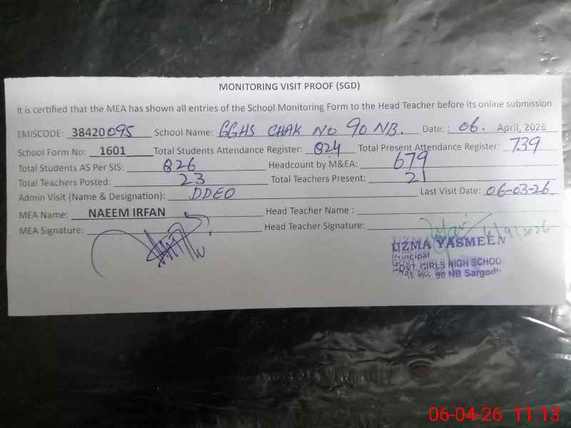 | EMIS Code: 38420095 | Name of School: GGHS CHAK NO.90 NB | |||