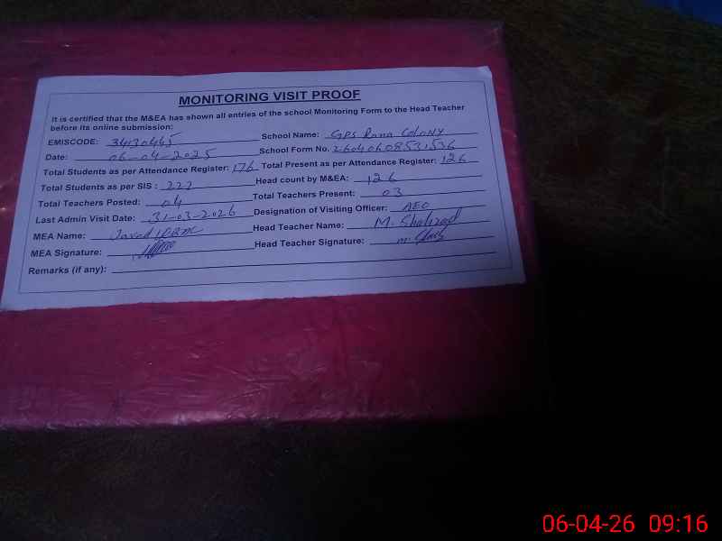 | EMIS Code: 34130445 | Name of School: GPS RANA COLONY | |||