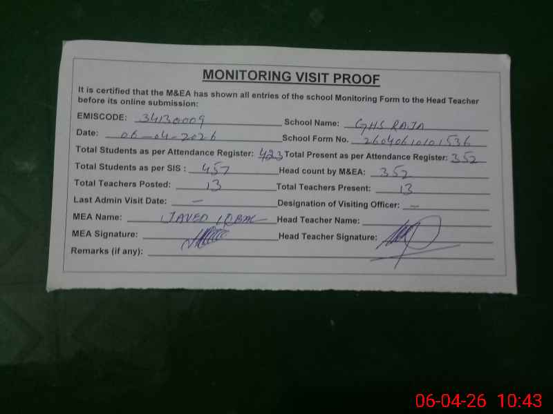 | EMIS Code: 34130009 | Name of School: GHS RAJA | |||