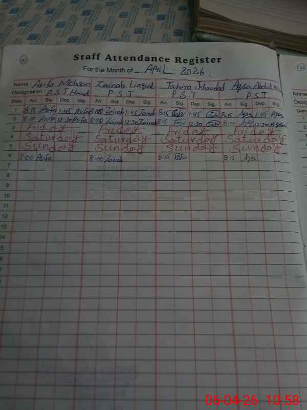 | Attendance Register | Head Teacher | MEA with School | Visit Proof |