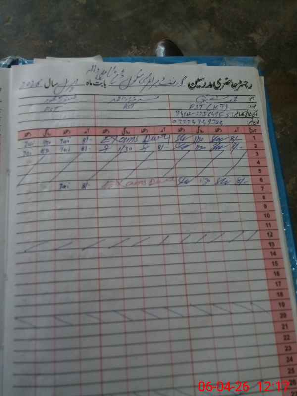 | Name: MU**** SH**** Designation: (School Headmaster's/Headmistress's) PST Phone/Cell Number: 03**** |