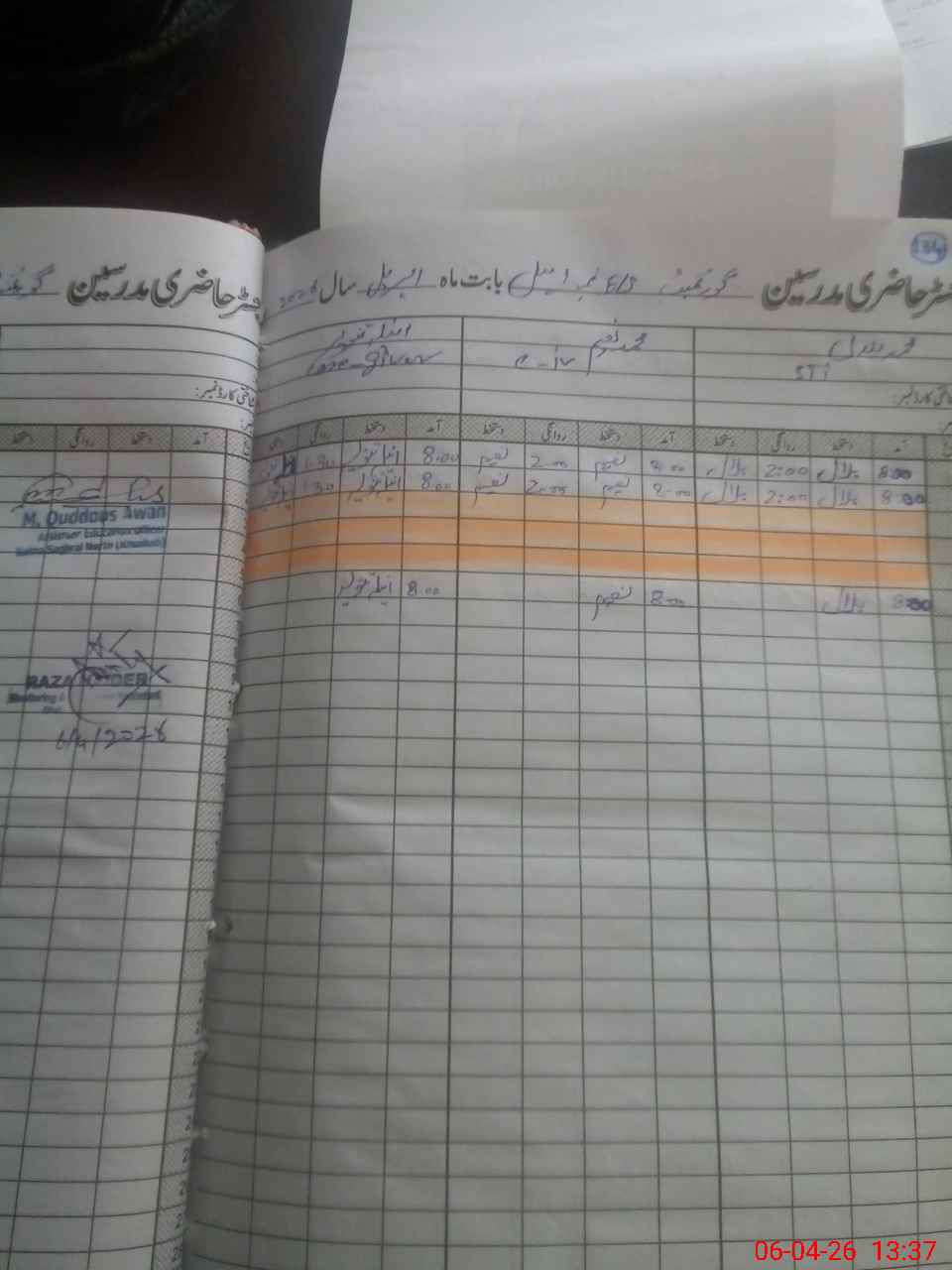 | CNIC | Full Name | Designation | R/C | Absence During Last Calender Month |
