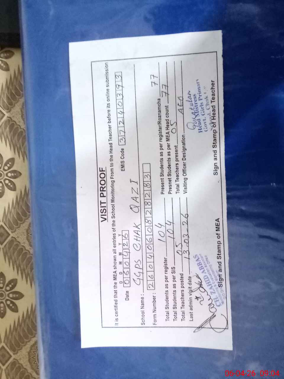 | EMIS Code: 37240393 | Name of School: GGPS CHAK QAZI | |||