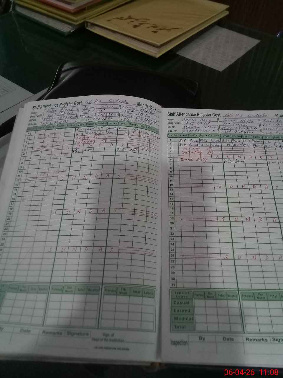 | 34**** | Sa**** Ba**** | PST Arts | Regular | 0 | 1 | 0 | 0 | 0 | 0 | 0 | 0 | 0 | Exam Duty |