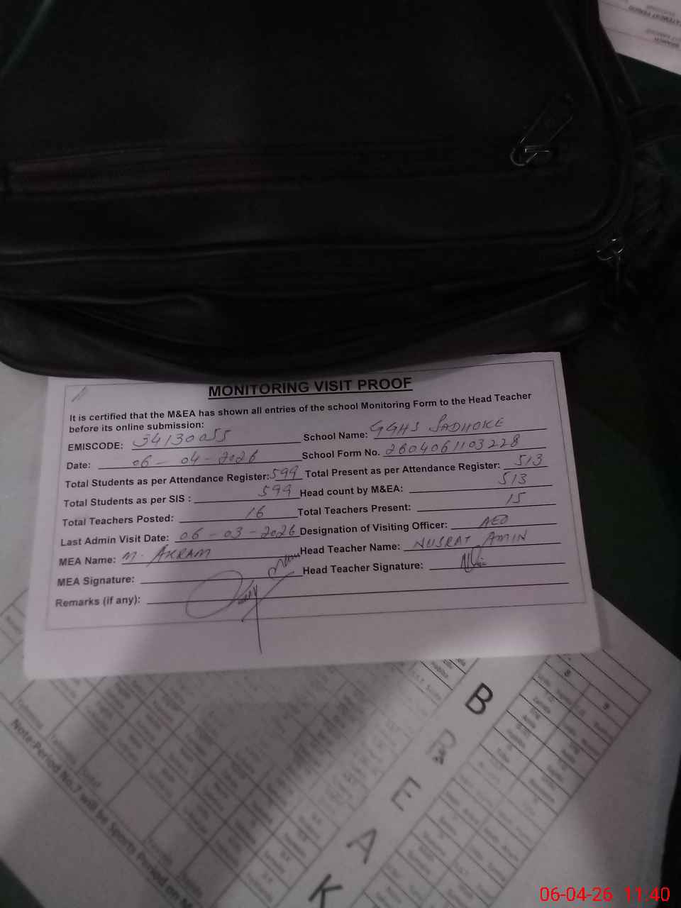 | Name: NU**** AM**** Designation: (School Headmaster's/Headmistress's) SST INC HEAD Phone/Cell Number: 03**** |