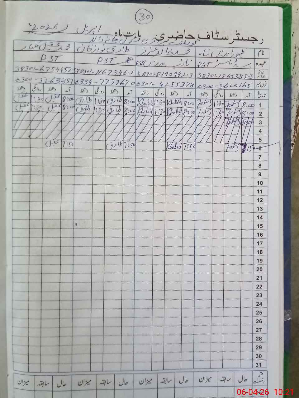 | Name: Za**** UdDi**** Sh**** Designation: (School Headmaster's/Headmistress's) PST Phone/Cell Number: 03**** |