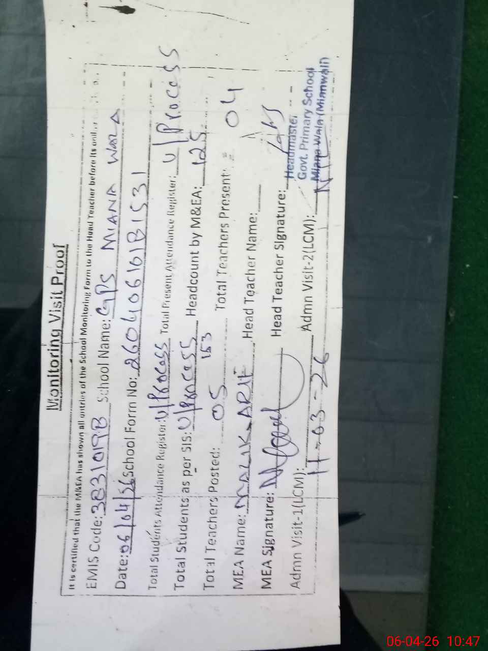 | EMIS Code: 38310198 | Name of School: GPS MIANA WALA | |||