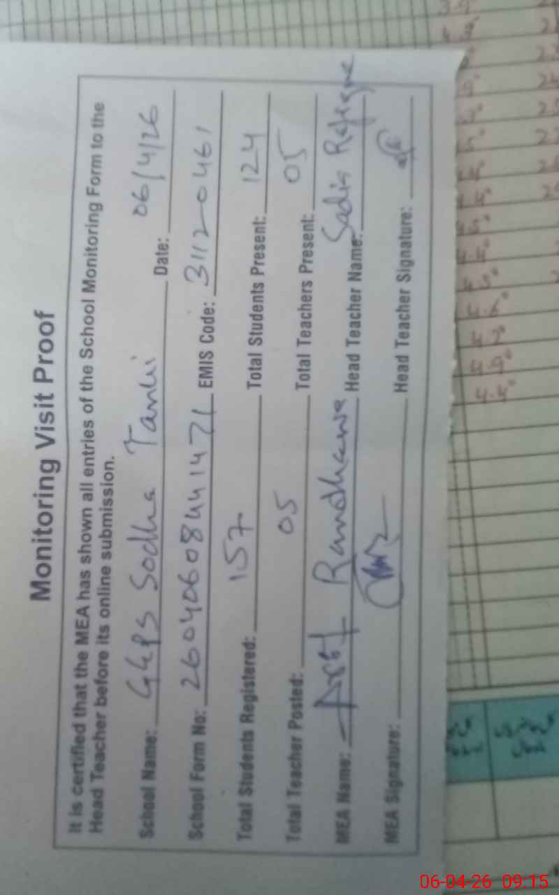 | EMIS Code: 31120461 | Name of School: GGPS SODAH TANKI | |||