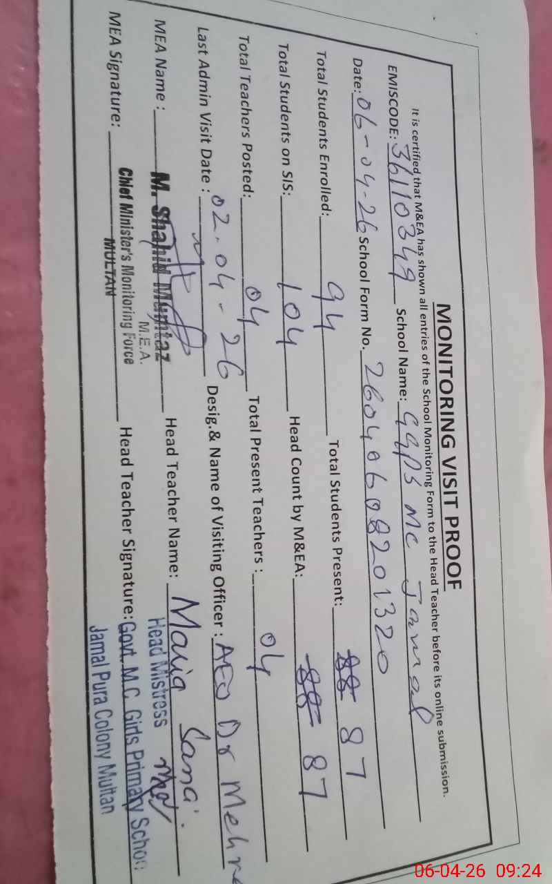 | EMIS Code: 36110349 | Name of School: GGPS MC JAMAL PURA | |||