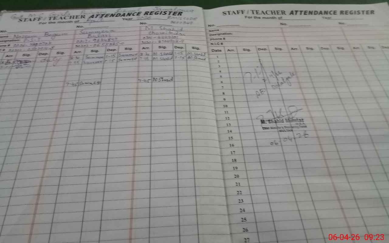 | Name: Ma**** Sa**** Designation: (School Headmaster's/Headmistress's) HEADMISTRESS Phone/Cell Number: 03**** |