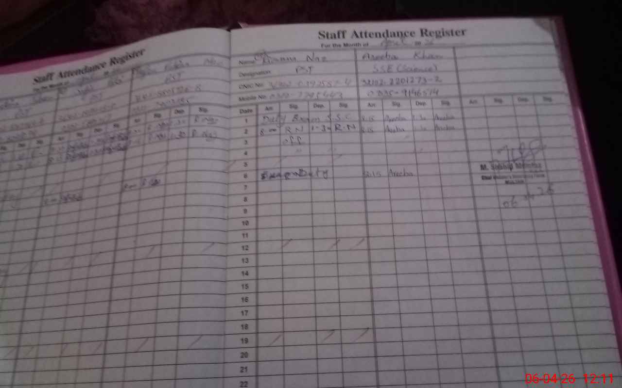 | 36**** | Ri**** Na**** | PST Arts | Regular | 0 | 0 | 0 | 0 | 0 | 0 | 0 | 0 | 0 | Exam Duty |