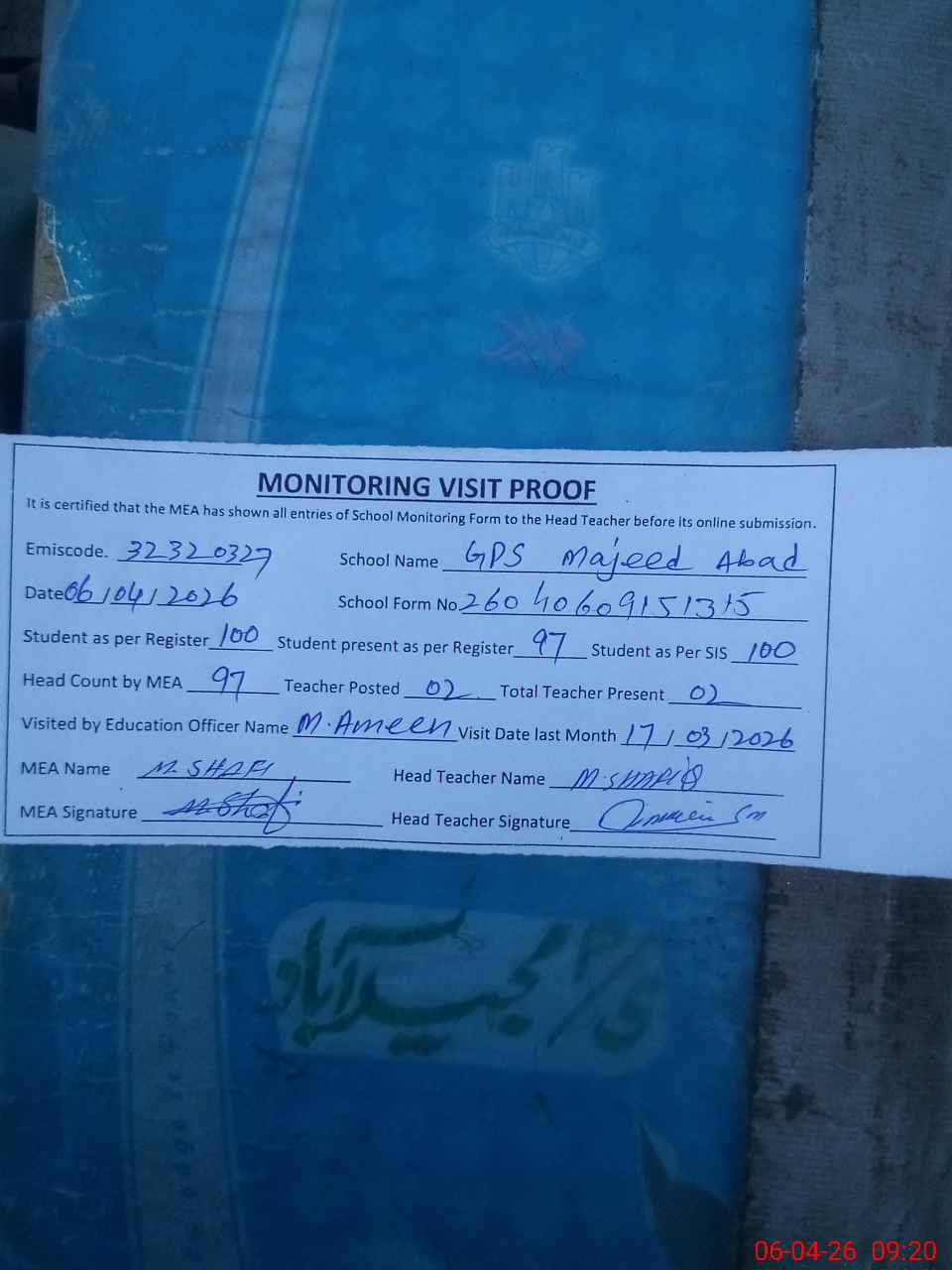 | EMIS Code: 32320327 | Name of School: GPS MAJEED ABAD | |||