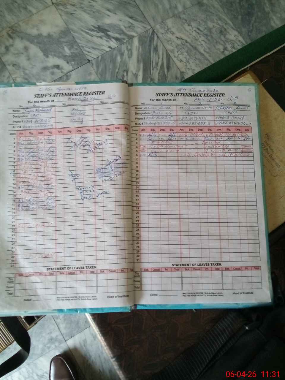 | Remarks (Use Separate Page if Required): Teacher Sabahat Ali has removed from service from 21 Dec, 2024, but his name is still showing in the tab list. | |||||