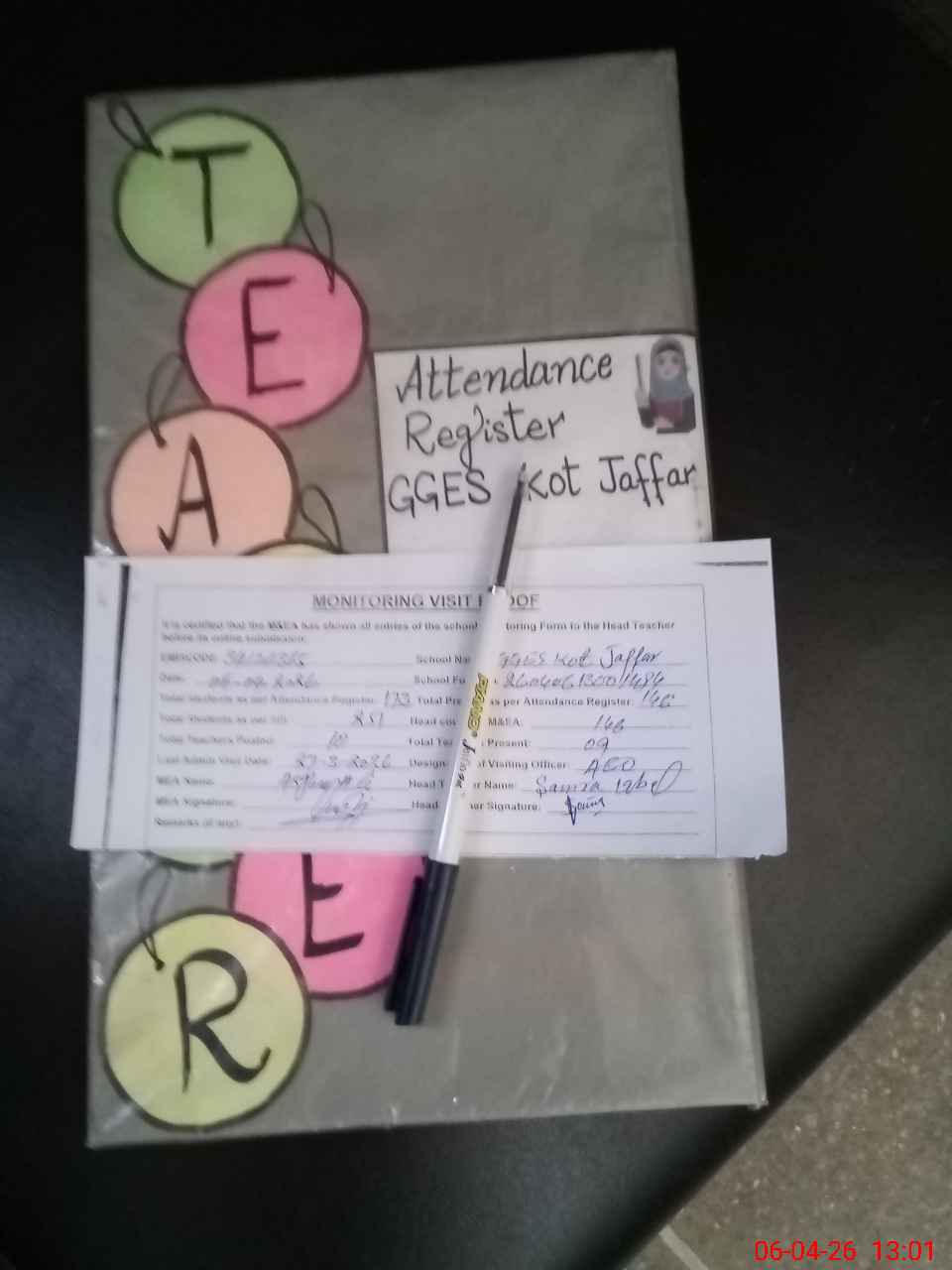 | Attendance Register | Head Teacher | MEA with School | Visit Proof |