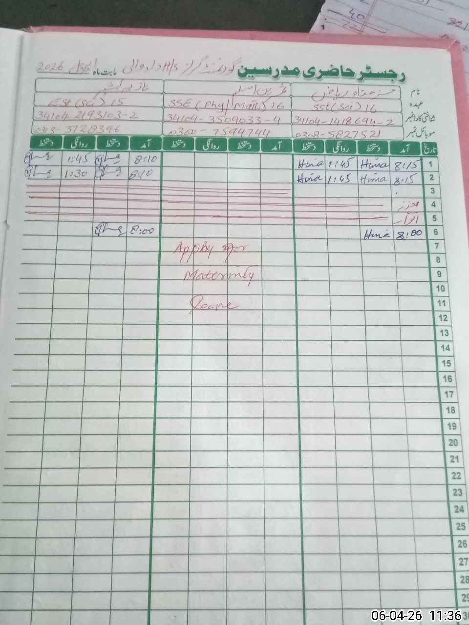 | Name: HI**** RI**** Designation: (School Headmaster's/Headmistress's) HEADMASTER Phone/Cell Number: 03**** |