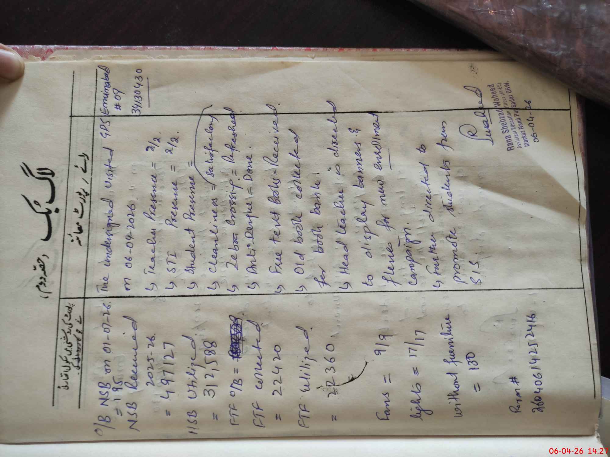 | Name: NA**** SH**** Designation: (School Headmaster's/Headmistress's) PST Phone/Cell Number: 03**** |