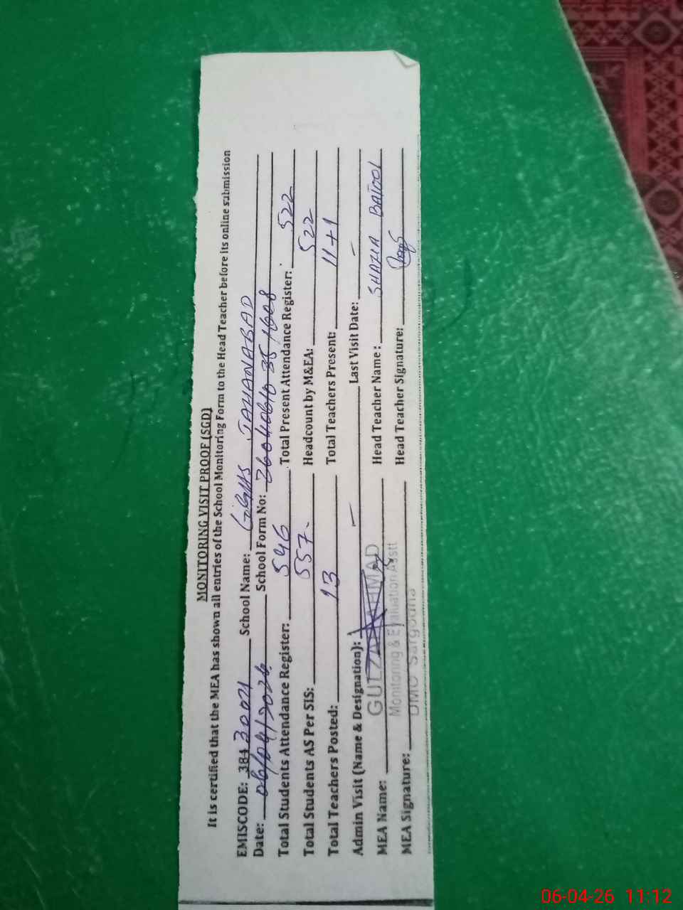 | EMIS Code: 38430071 | Name of School: GGHS JAHANABAD | |||